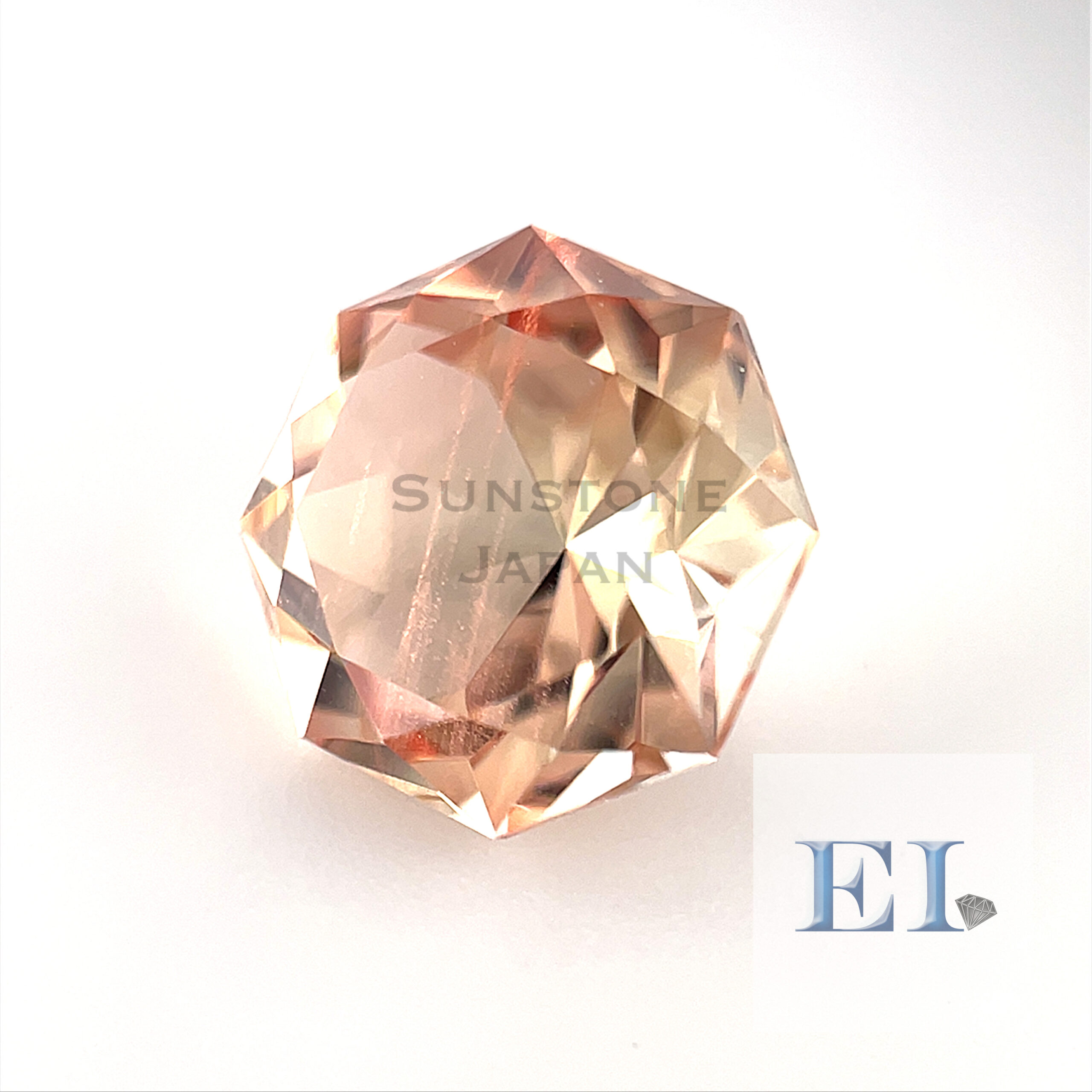 シラーピンクのイリュージョンハートカットのオレゴンサンストーンルースです。