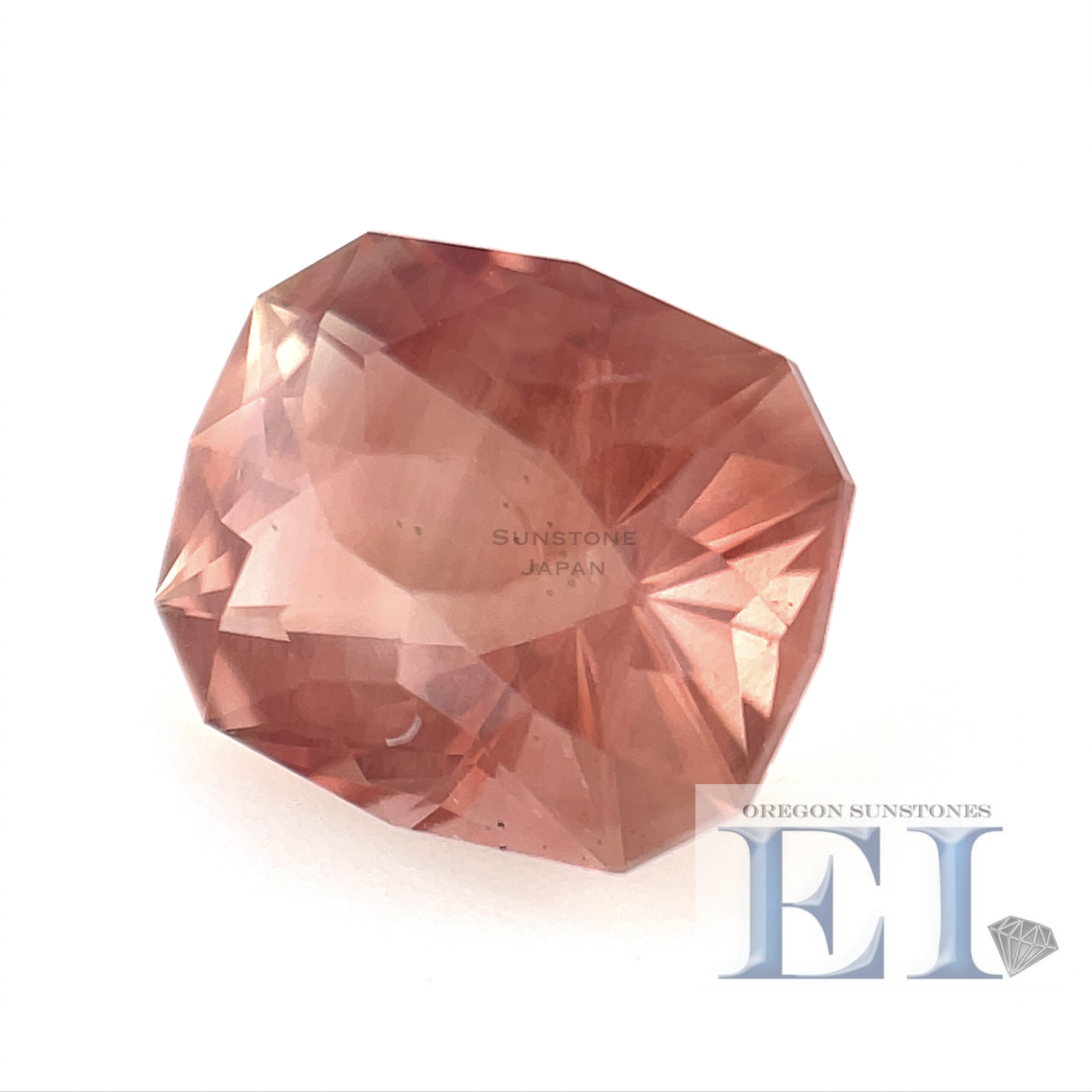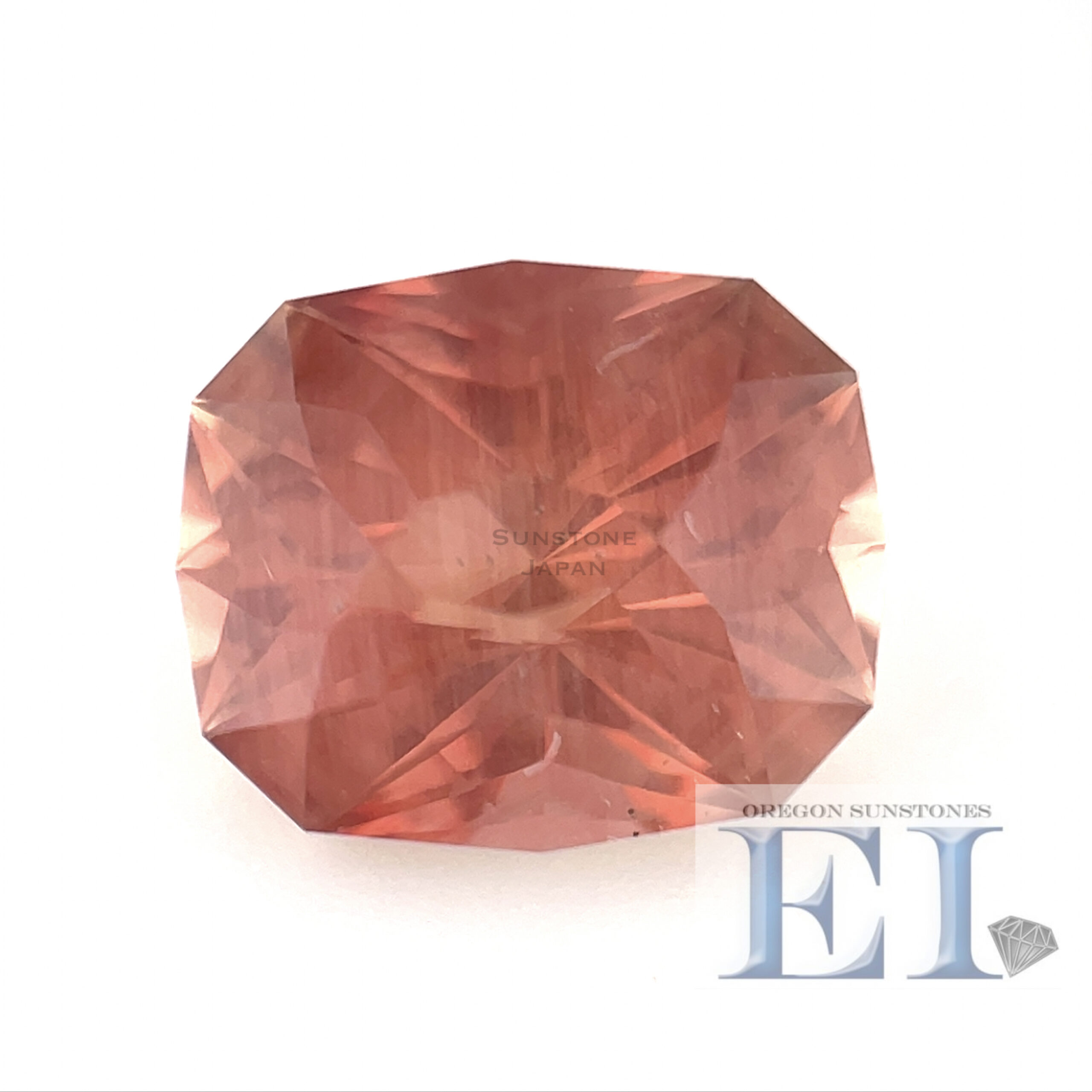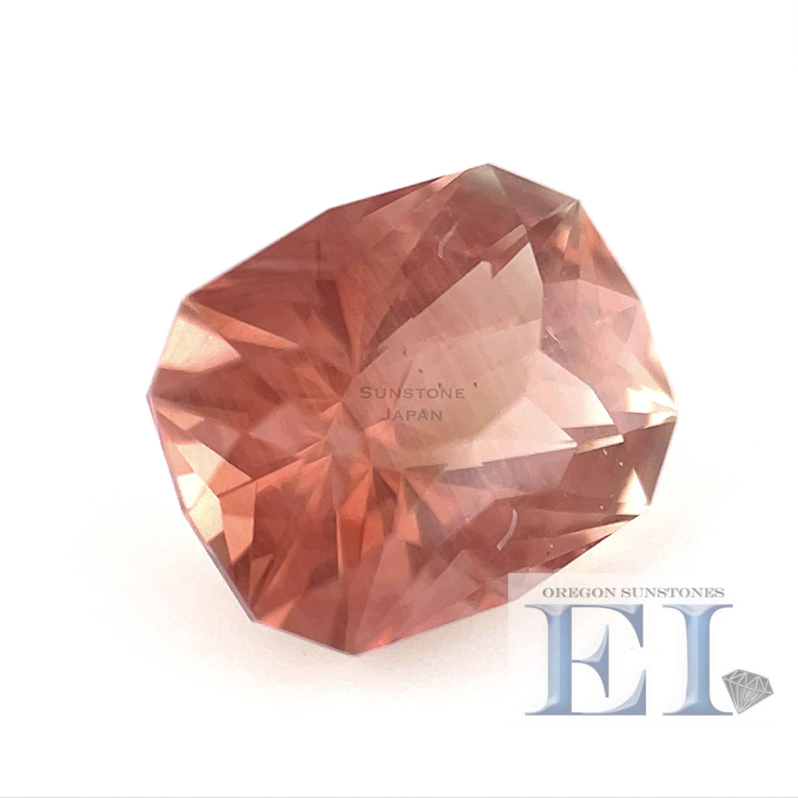 オレンジレッドのクッションカットのオレゴンサンストーンルースです。