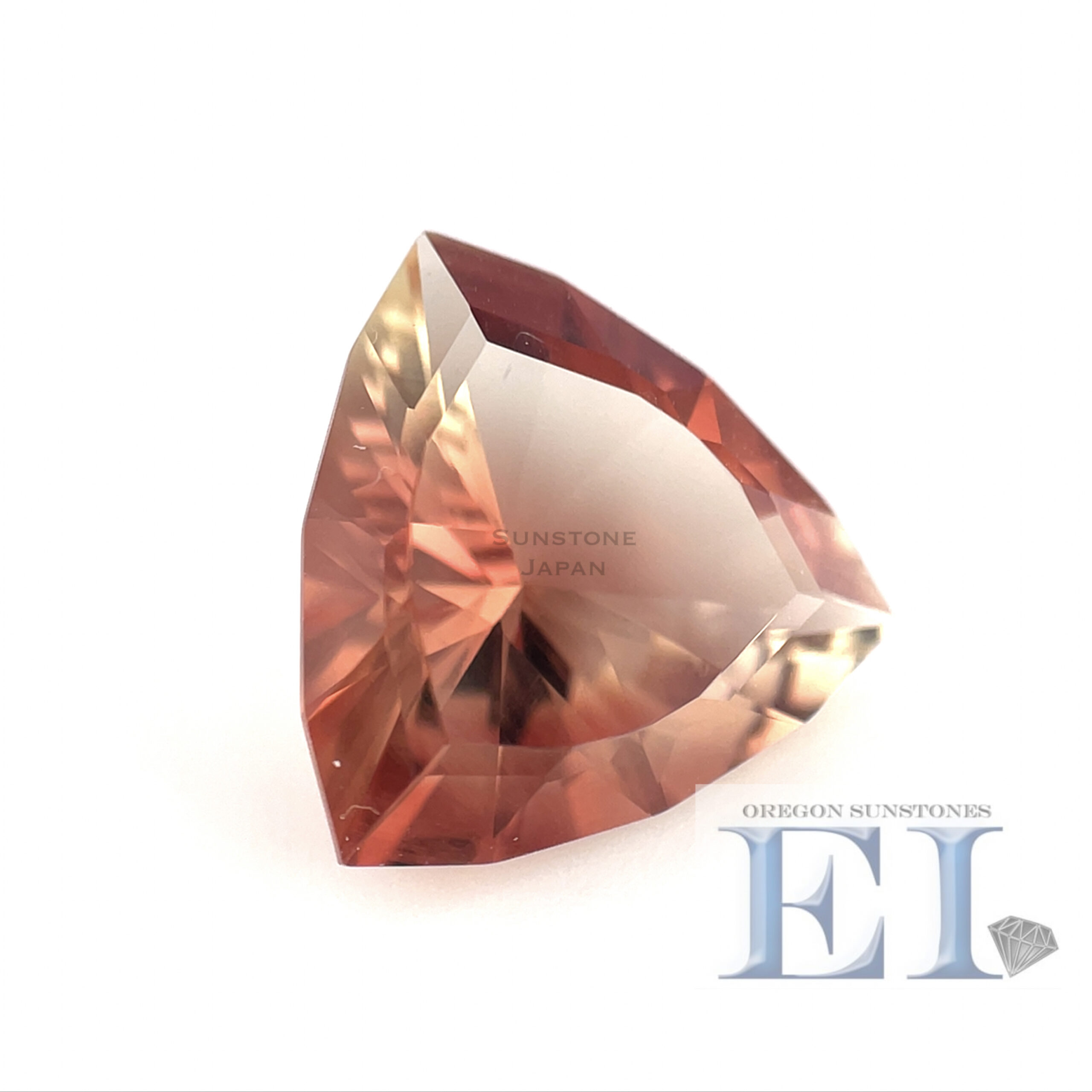 赤とイエローのトリリアントカットのオレゴンサンストーンルースです。
